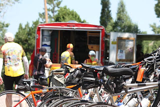 s Postpile to the NW early in the day and a bit of history at the second rest stop... lunch at a shaded park in Newcastle and then onto South Dakota and into the Black Hills. The forest fires of 2009 was evident as the hills were grass covered instead of the Black Hills Spruce. the afternoon thundershowers produced hail at the hotel and broke up bike wash.... riders enjoyed the day despite the prevailing easterly winds.